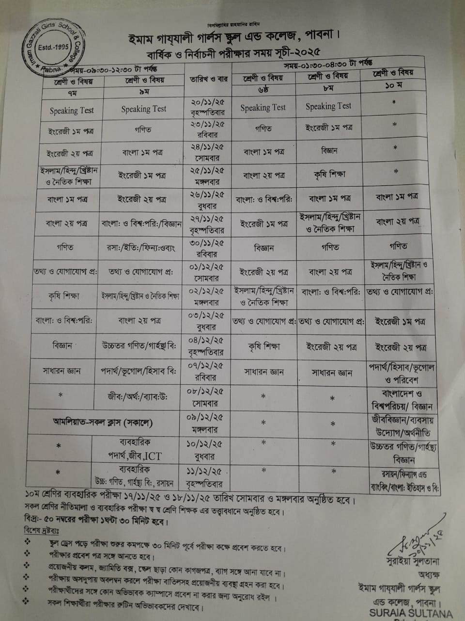 ২০ নভেম্বর থেকে বার্ষিক পরিক্ষা শুরু